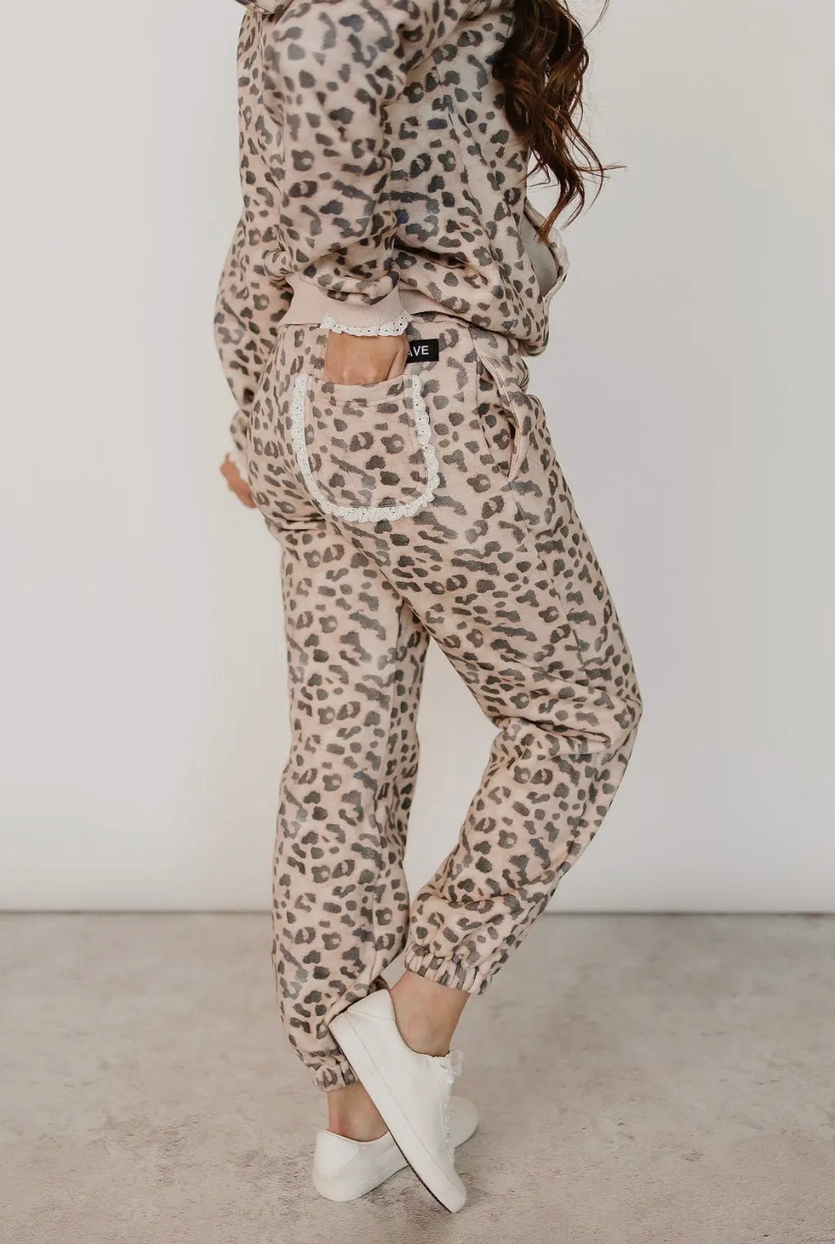 Features: Medium Stretch Fabric Fleece lined 60% Cotton, 40% Polyester Comfy, Flattering Fit Back Pocket with Lace Detail Side Pockets AVE Patch