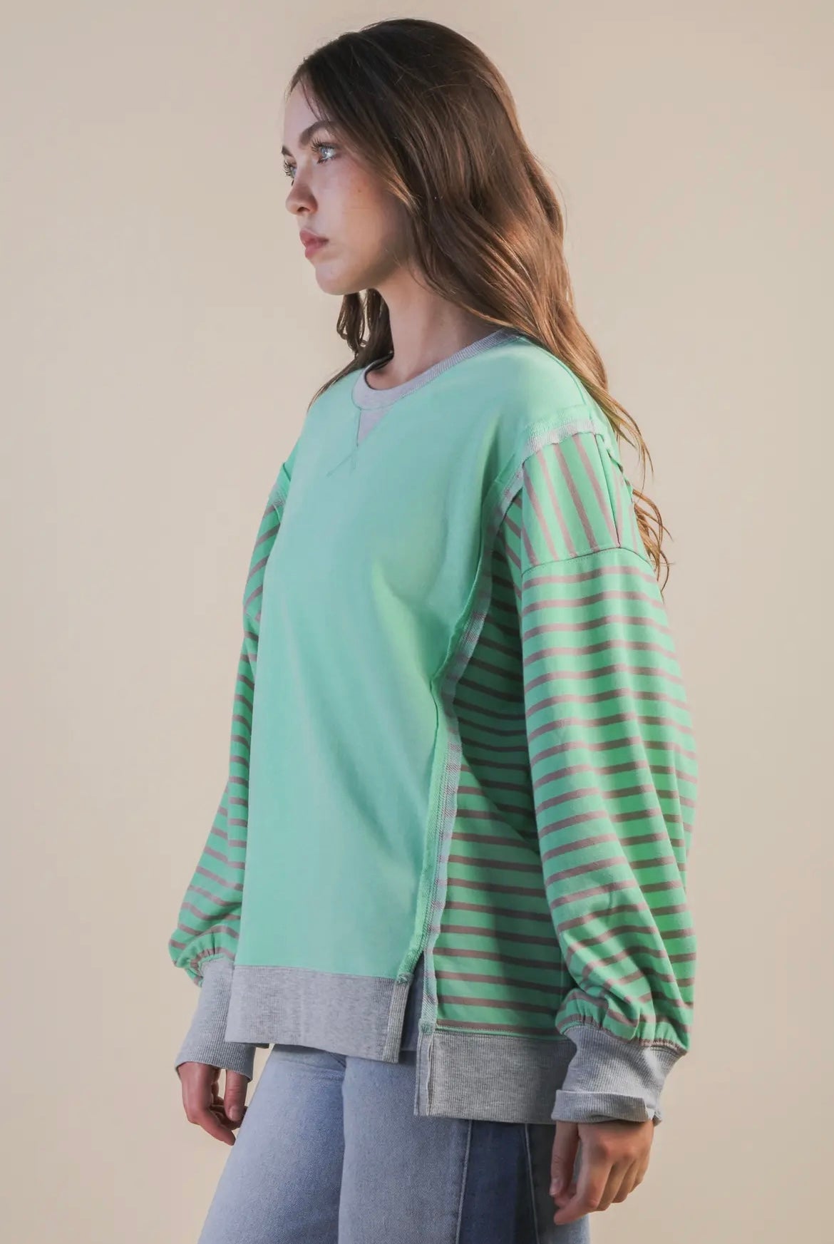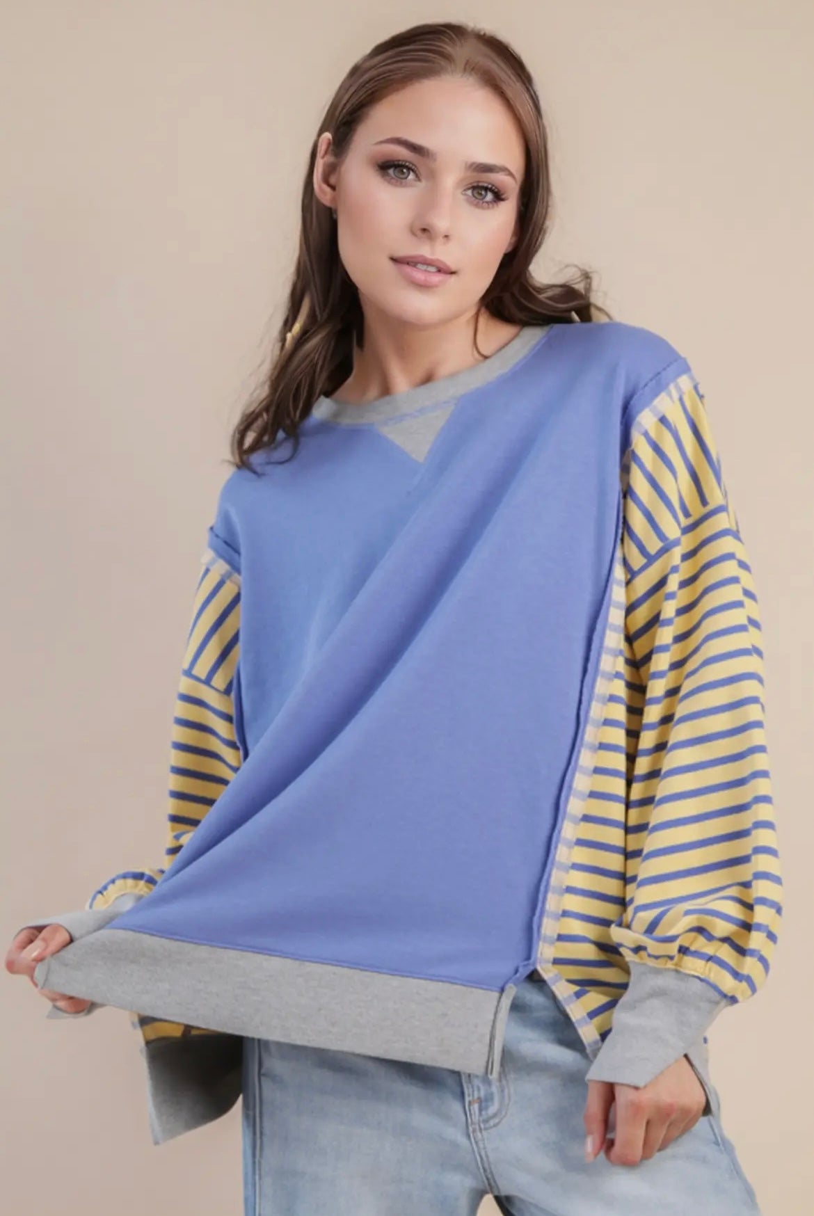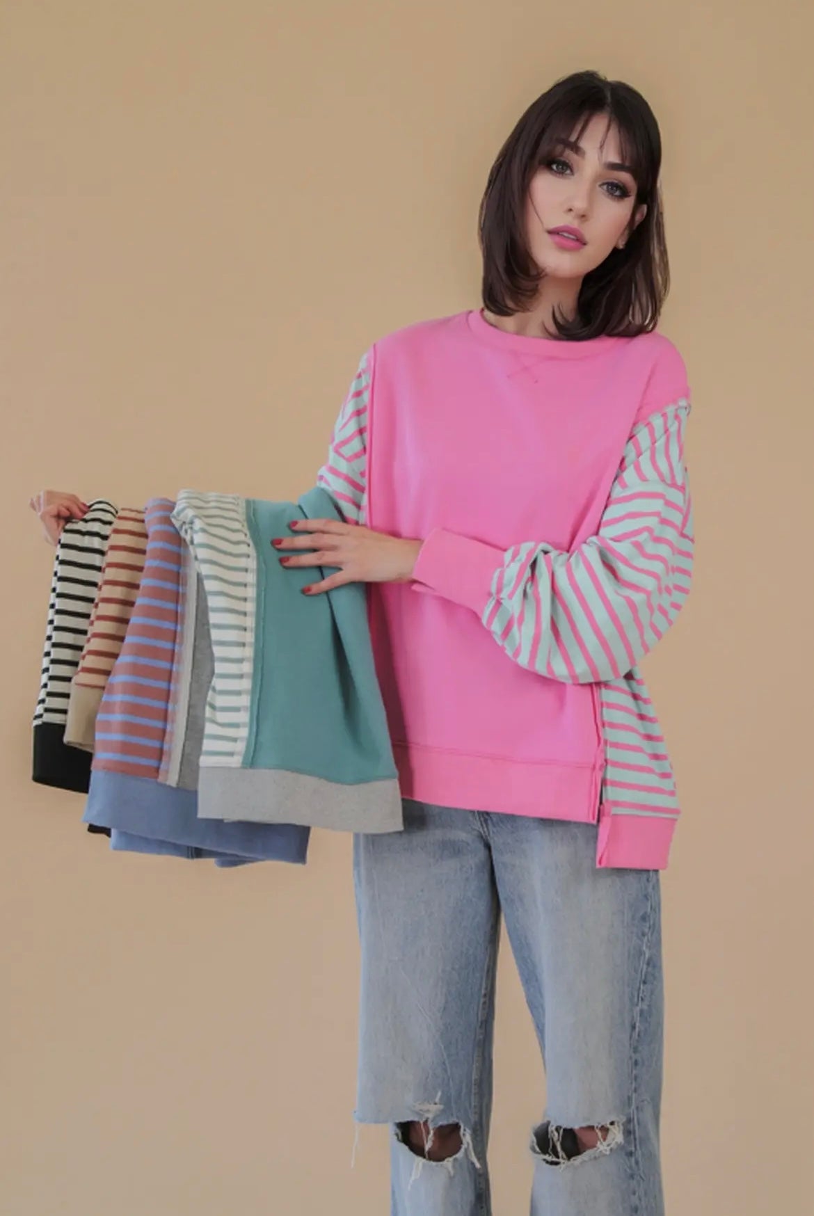 - Oversized Striped Casual Knit Top