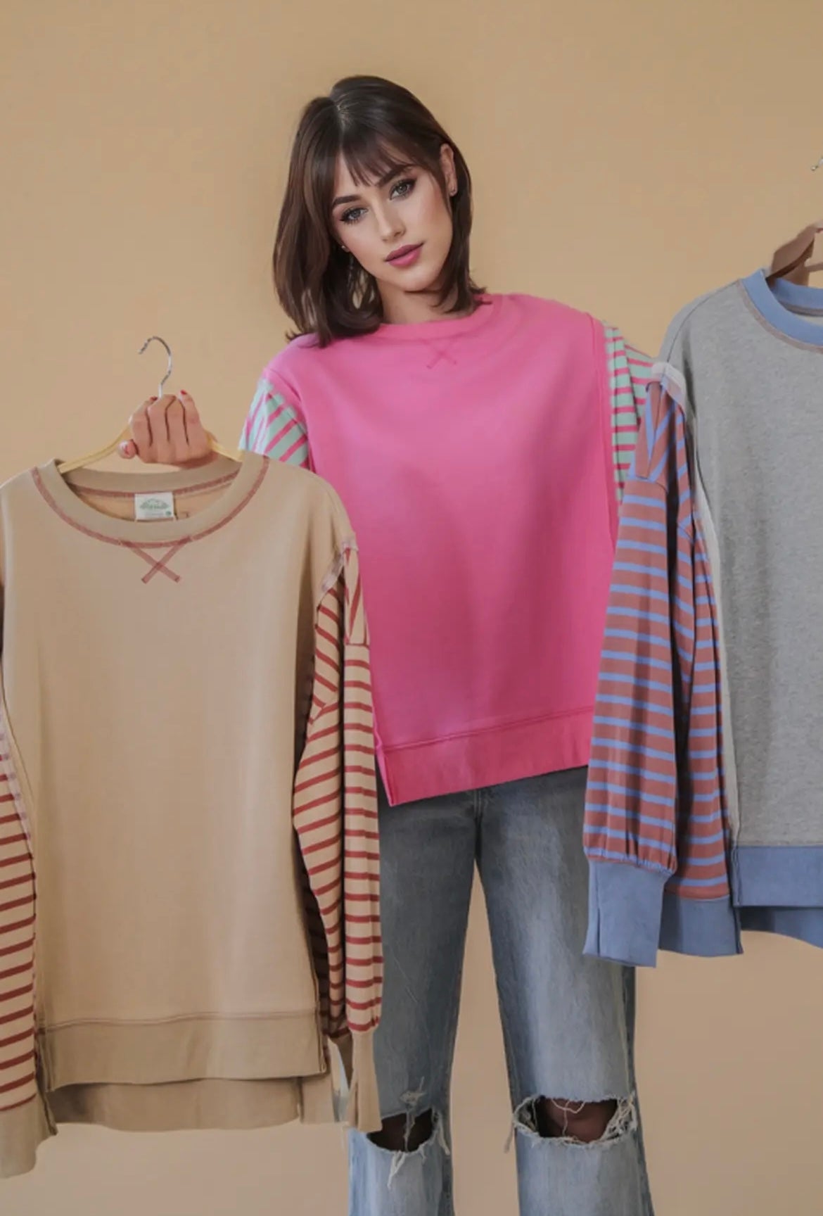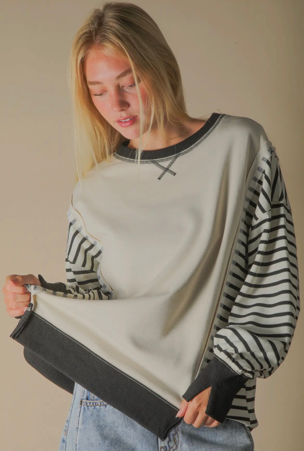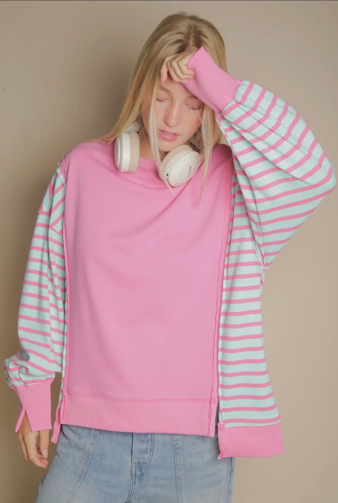 - Oversized Striped Casual Knit Top