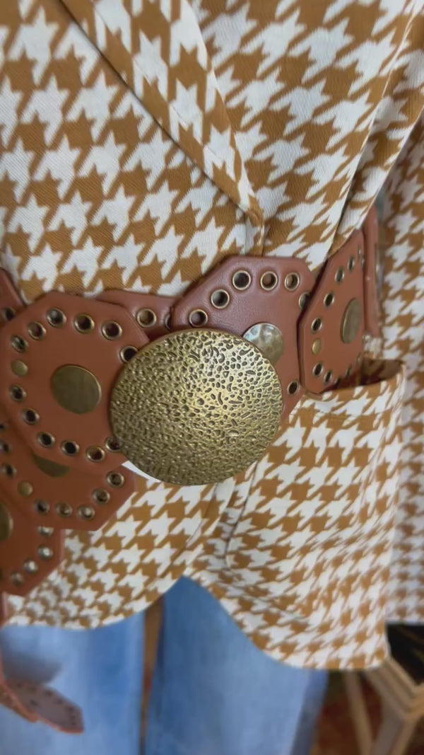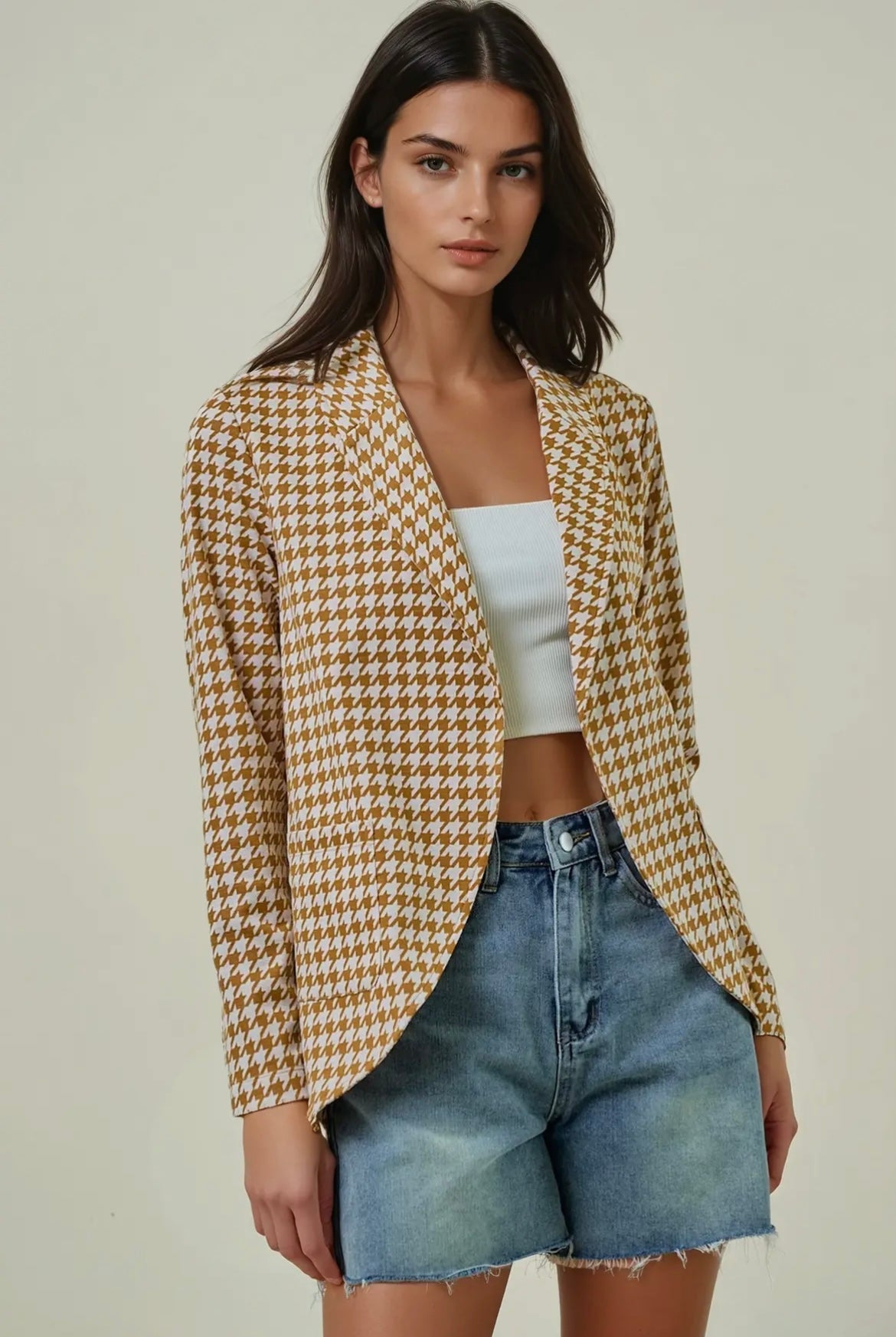 - Features a classic houndstooth jacquard pattern for a timeless, sophisticated look