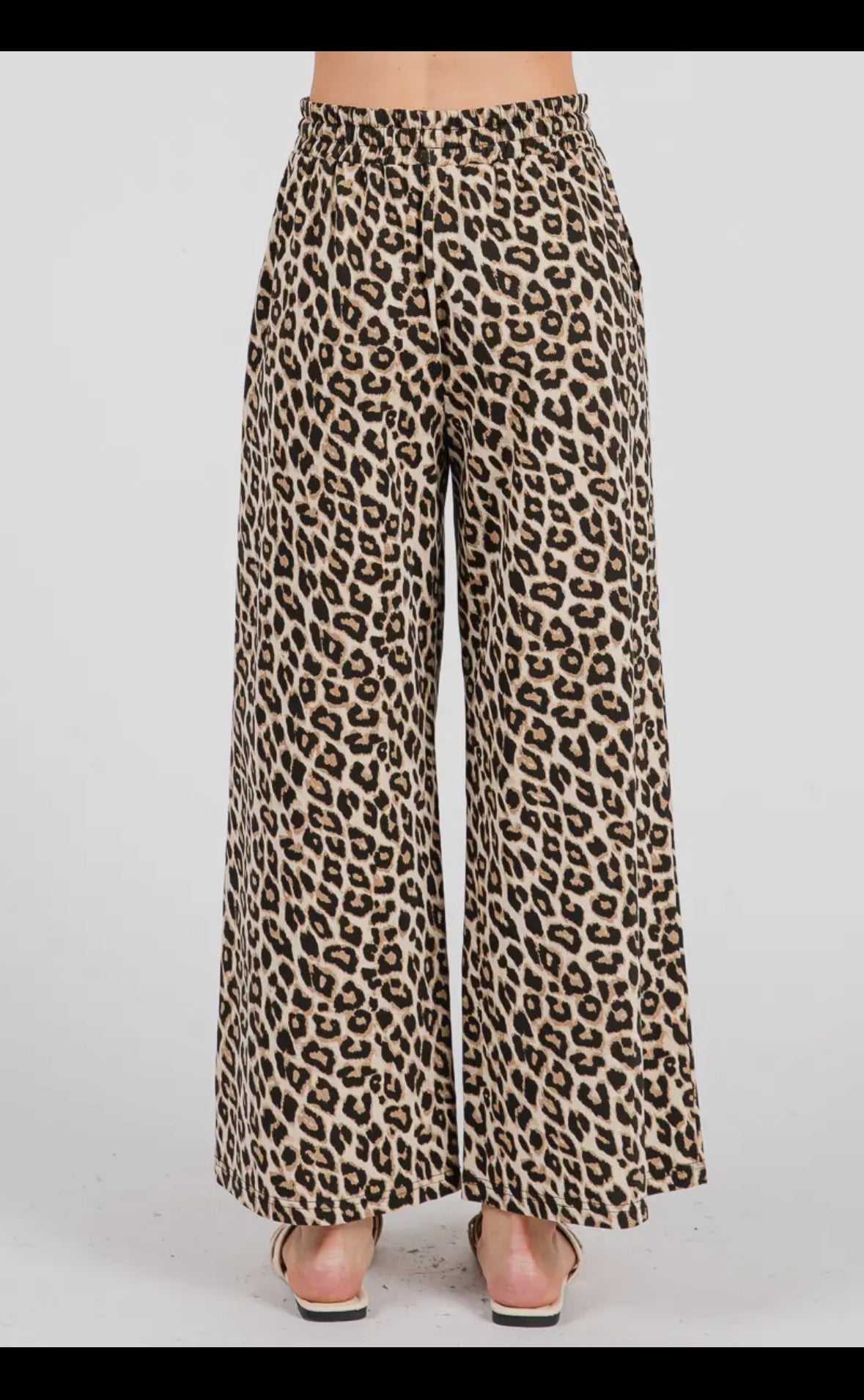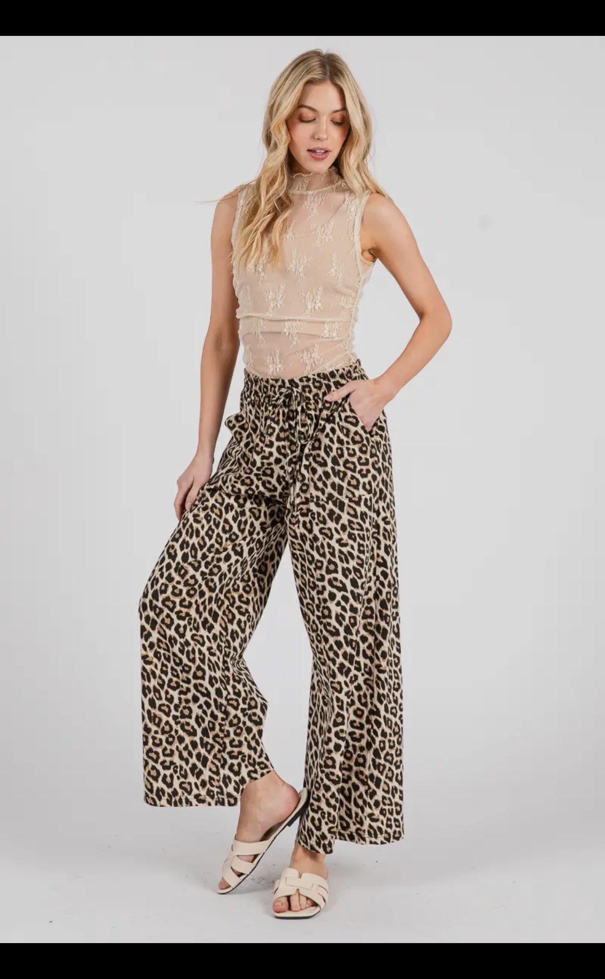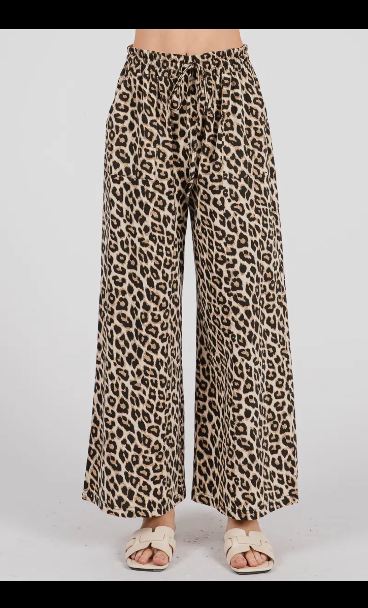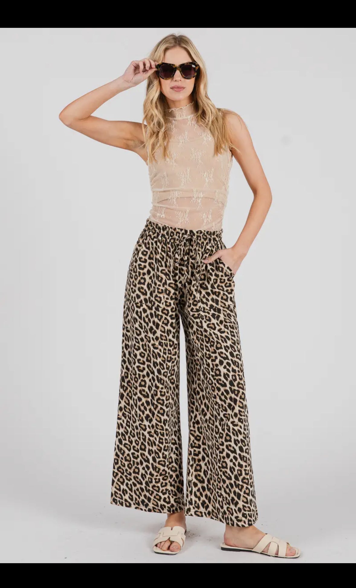 Make a bold statement with these stylish wide-leg pants featuring a fierce leopard print design. The relaxed fit and lightweight fabric offer ultimate comfort, while the elastic waistband with a drawstring ensures a perfect fit. Perfect for casual outings, vacation wear, or effortless everyday styling, these pants can be paired with a fitted top or crop top for a trendy look.