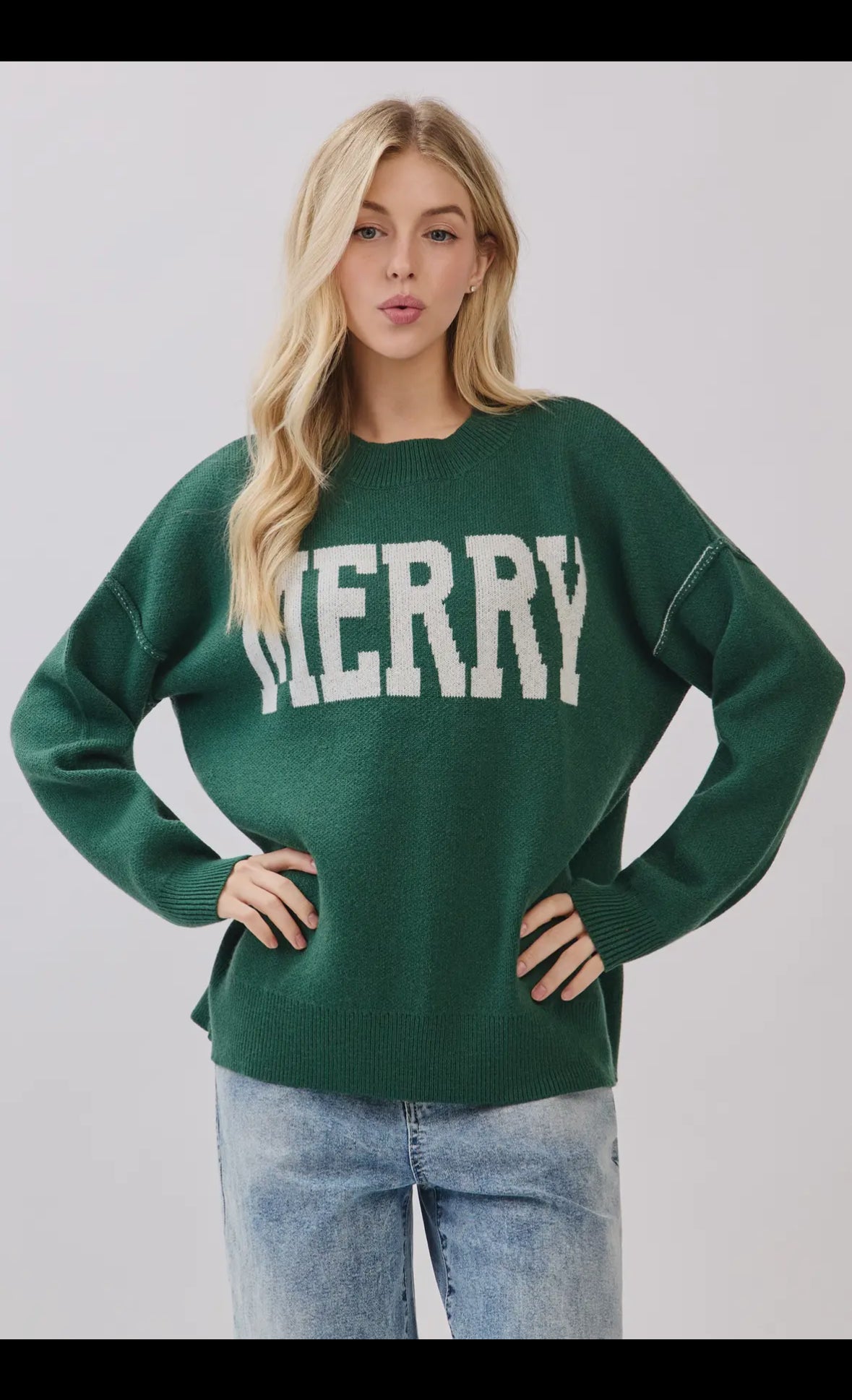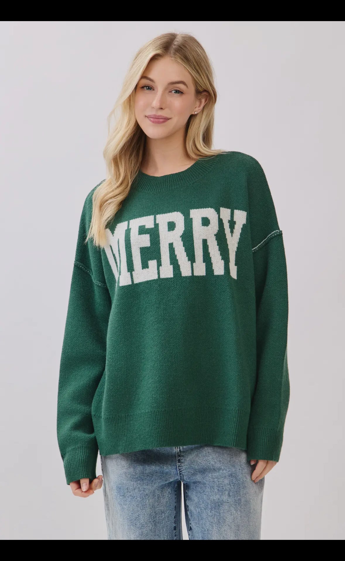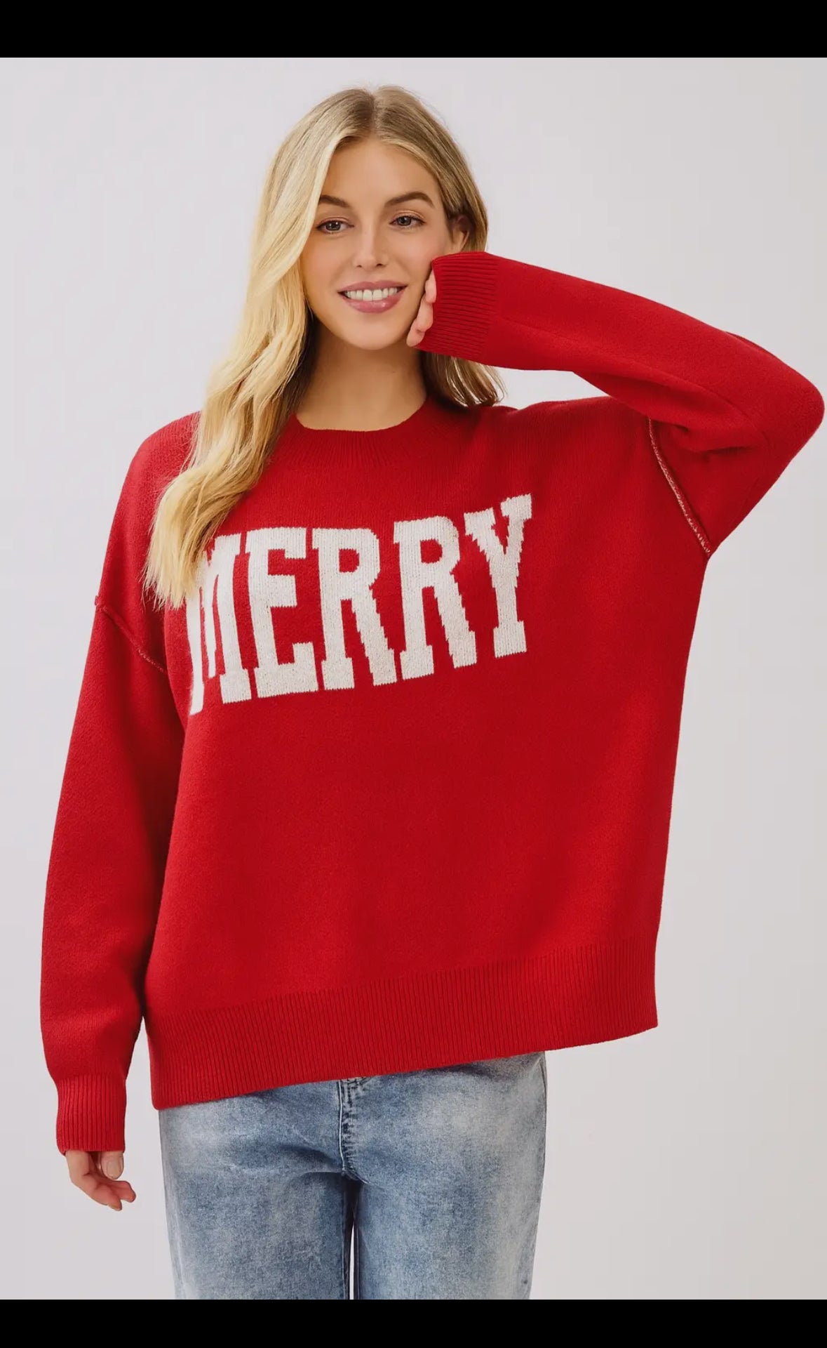Designed with a relaxed fit, drop shoulders, and a cozy knit texture, it offers both comfort and seasonal charm. Perfect for pairing with jeans or leggings for a festive, casual style.merry sweater, holiday sweater, oversized knit, winter top, festive pullover, cozy holiday wear, graphic sweater, Christmas sweater, relaxed fit knit, seasonal fashion