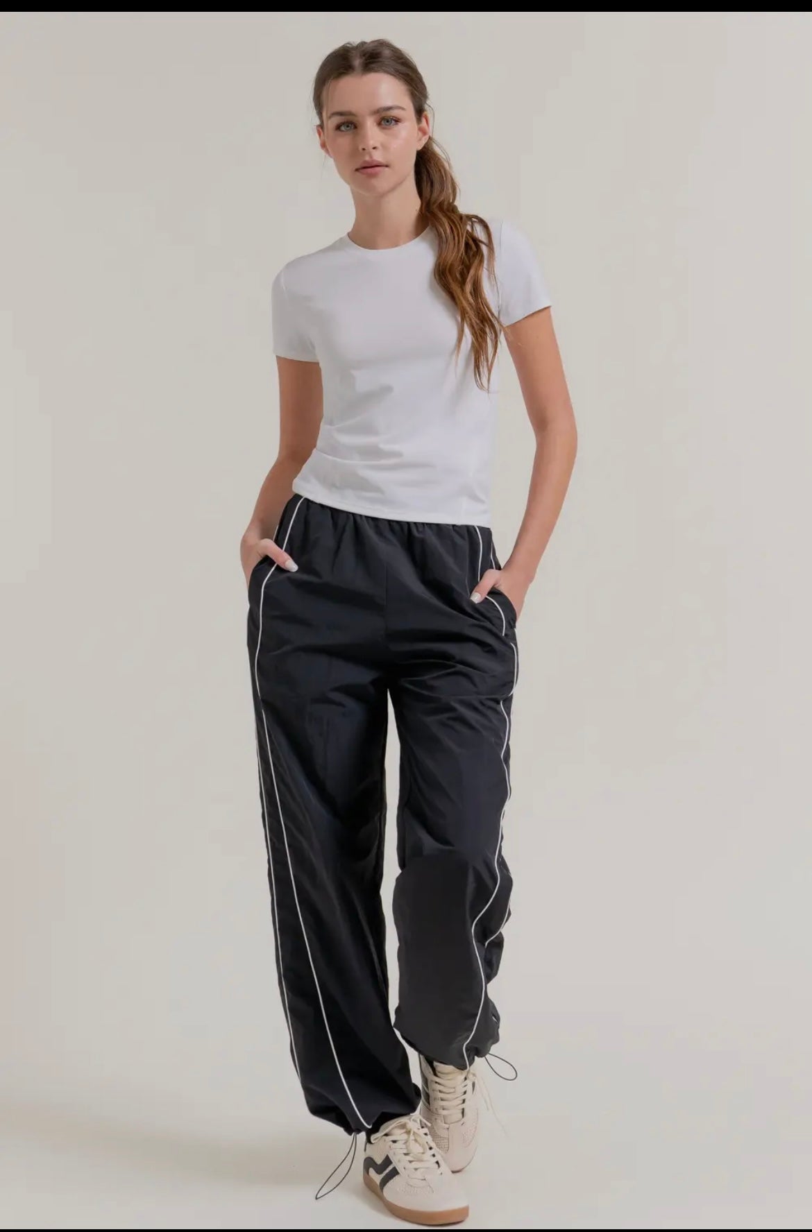 ANORAK FABRIC SIDE PIPING TRACK PANTS WITH LEG OPENING STOPPER