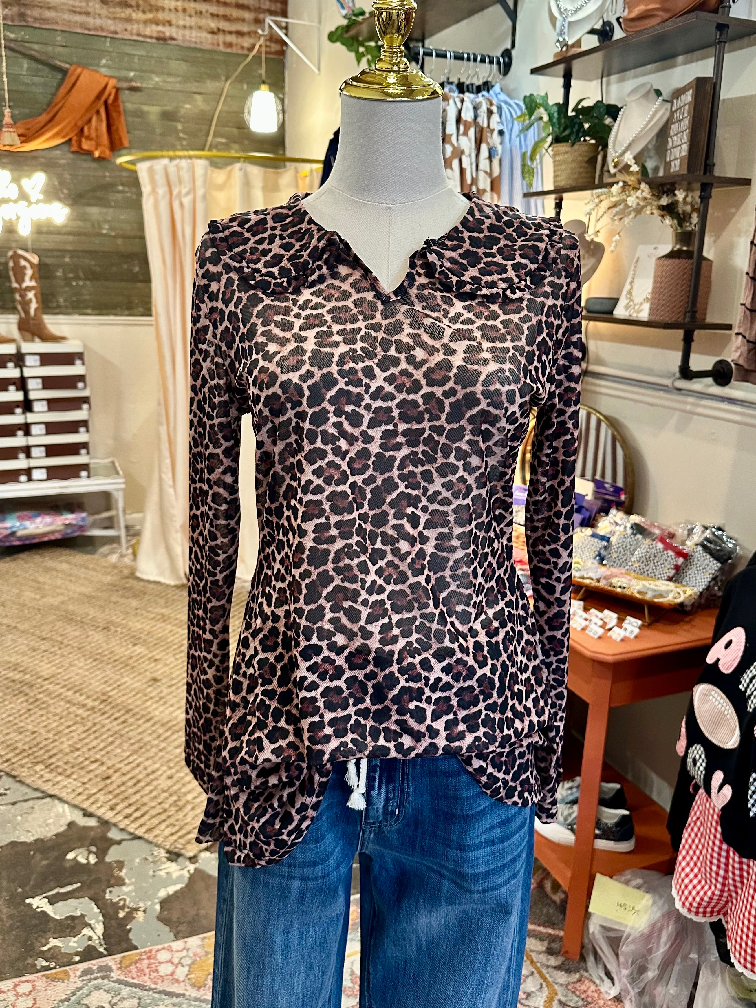 Ivory Lace Long-Sleeve Blouse with Ruffle Collar