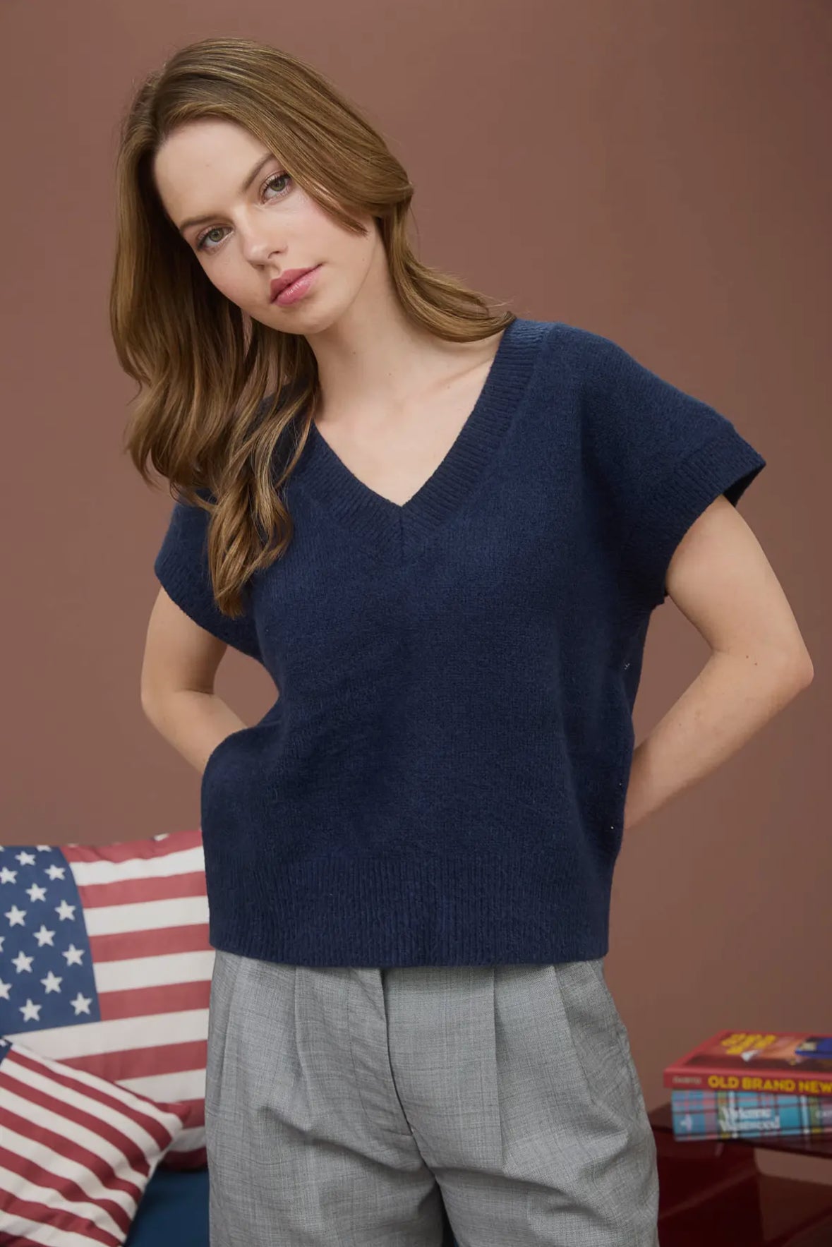 V neck pullover sweater