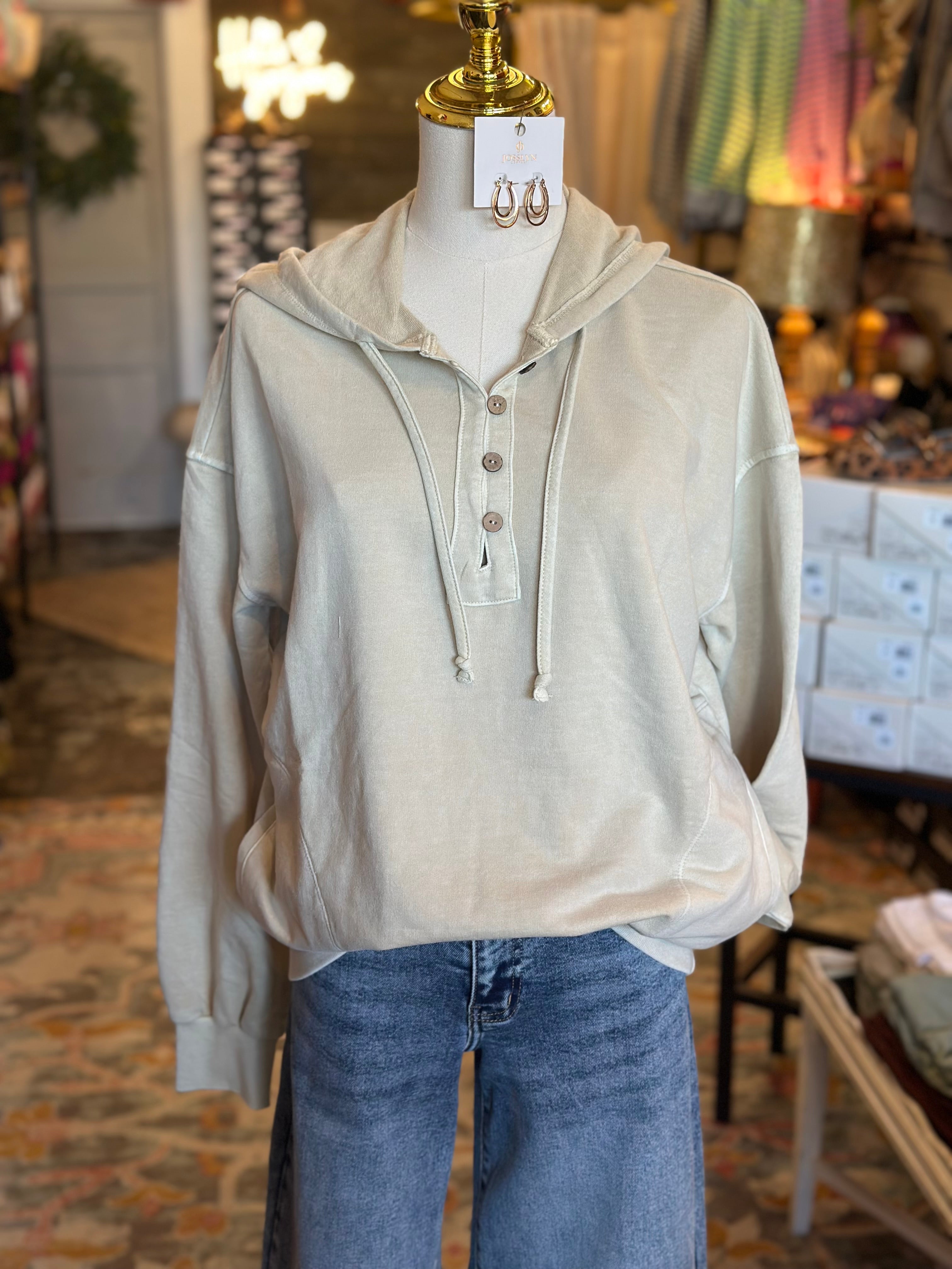 Washed Hooded Henley Knit Sweater