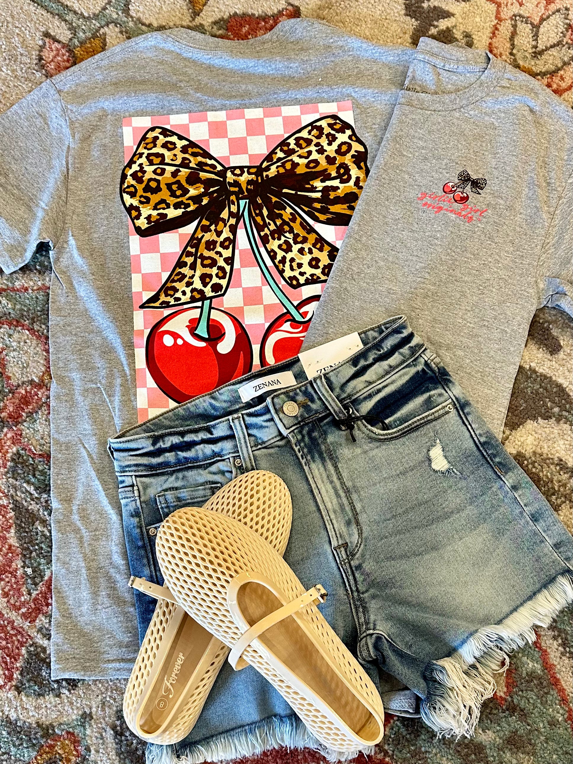 Unleash your wild side with our Leopard Cherry t-shirt! Made with 90% cotton and 10% polyester for maximum comfort. Show off your trendy sense of style with the cherry and leopard bow design. Perfect for adding a touch of quirkiness to any outfit!
